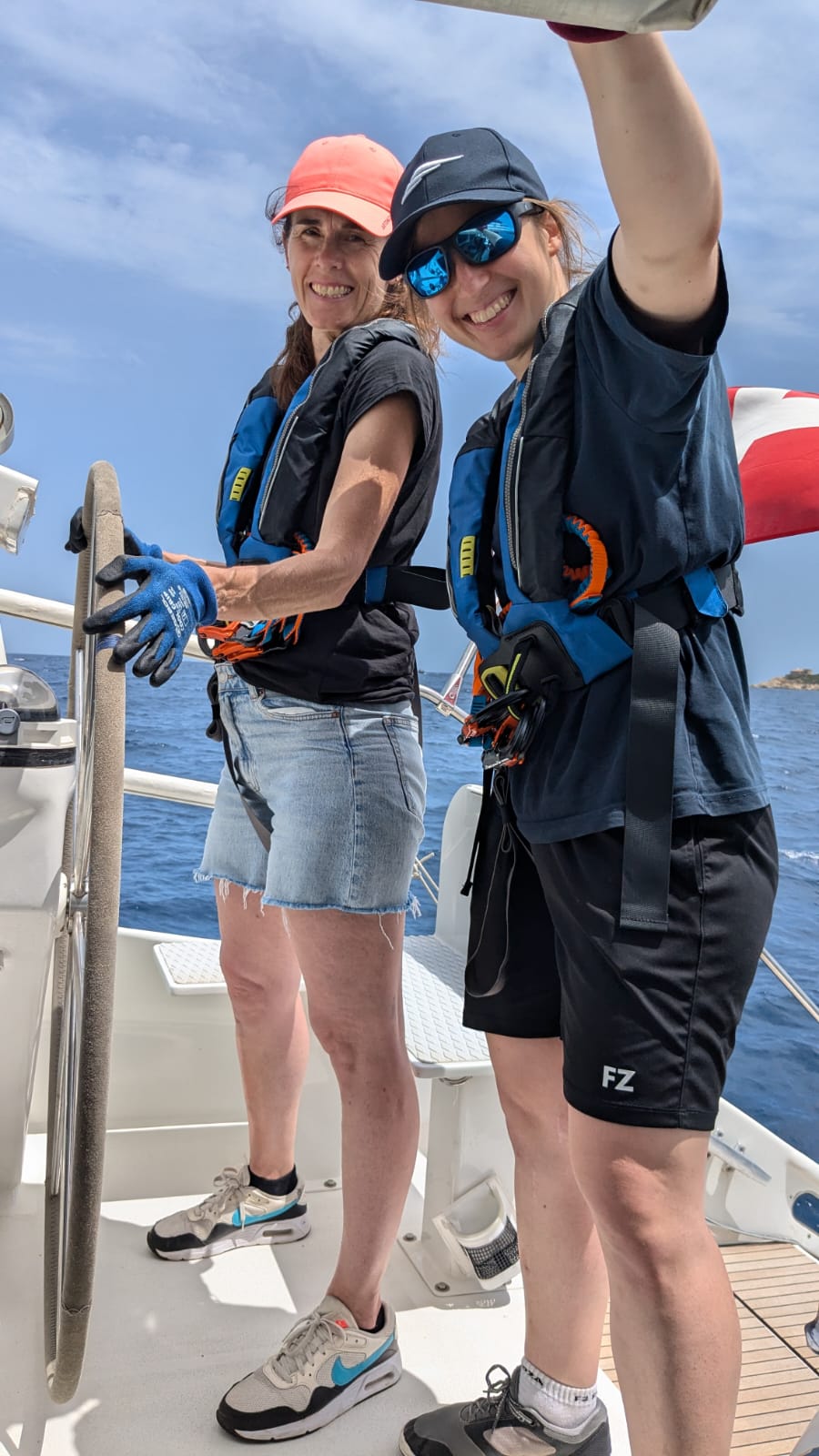 Am Mittwoch ging es wieder früh los. Damit wir genügend Wind geniessen konnten, verliessen wir die Bucht bei Sonnenaufgang. Leider war der Wind nicht wie in der Vorhersage und wir mussten uns auf Windsuche begeben. Auf dem offenen Meer wurde es zum Glück viel besser und der Tagesskipper wollte nicht mehr reffen, auch nach mehreren Alarmen für über 22 kt. Wir nennen keine Namen. Wir liefen dann sicher in der Bucht Cala Liccia ein und meisterten das Ankern beim ersten Anlauf – wir waren stolz. Es stellte sich aber heraus, dass wir uns zu früh gefreut hatten. Entgegen der Vorhersage hatten wir keinen entspannten ablandigen Wind sondern der Wind wehte aus allen Richtungen, weshalb wir schlussendlich eine Ankerwache organisierten, so dass die Skipperinnen auch ein Auge zutun konnten. Neben den erneuten Ankeraufregungen war die Bucht wirklich wunderschön, womöglich sogar die Schönste der Woche. Der sandige Untergrund bot strahlend blaues Wasser und der Rand der Bucht war von steinigen Ufern geschmückt. Hier lässt es sich leben.